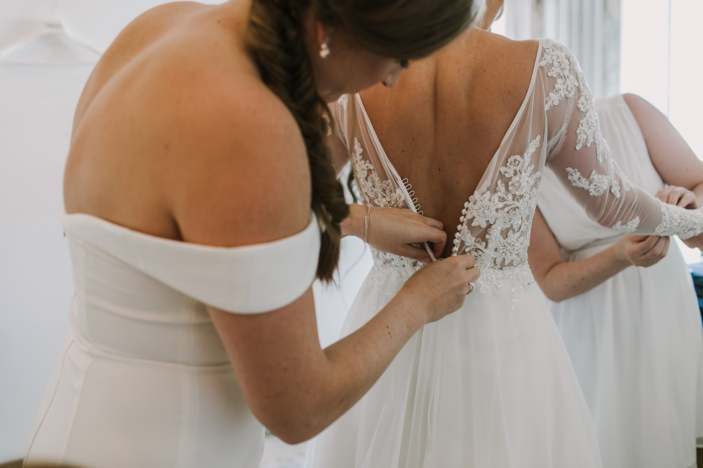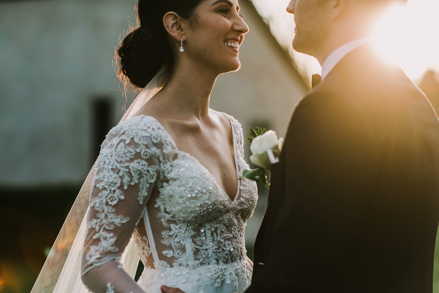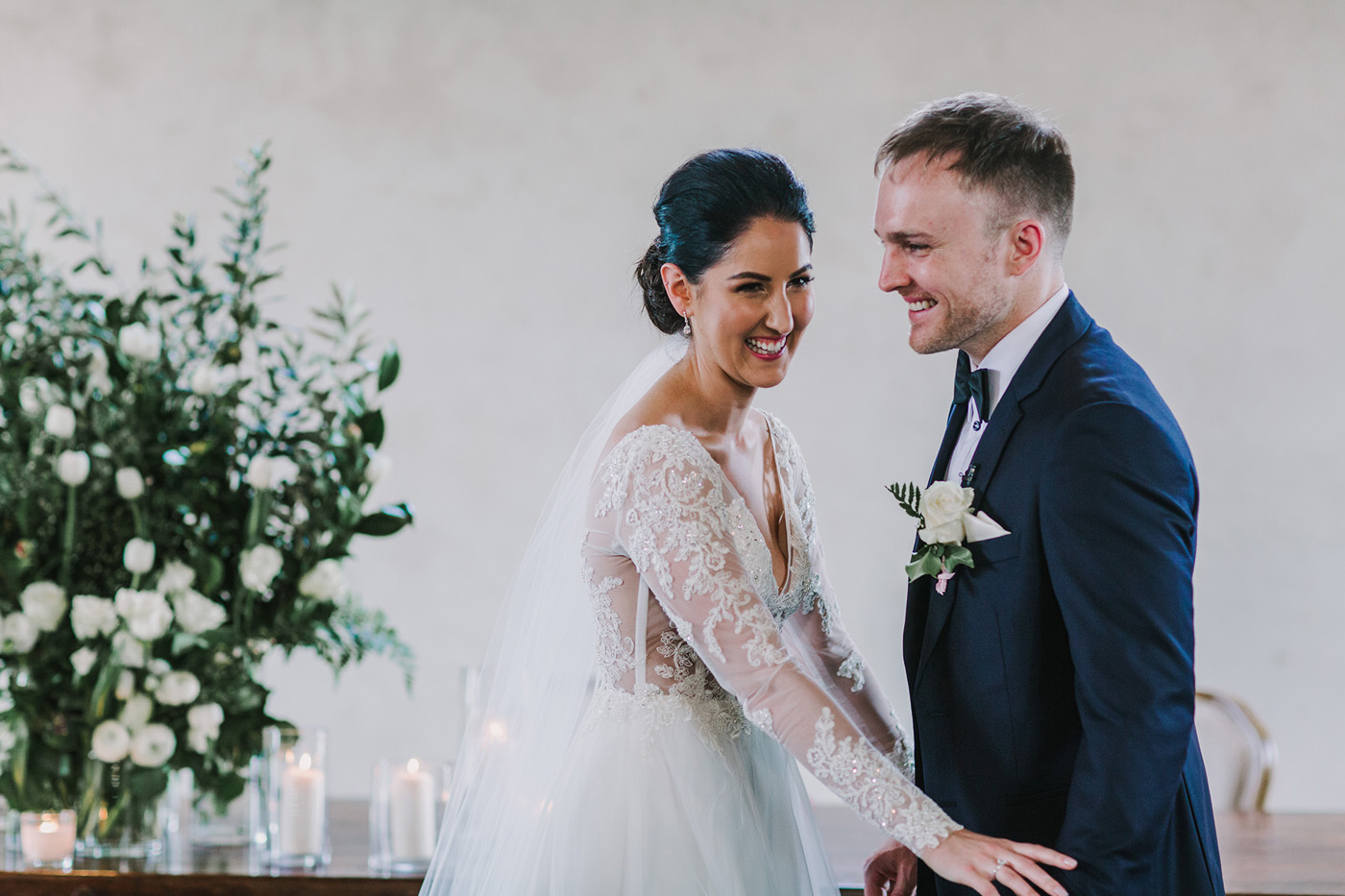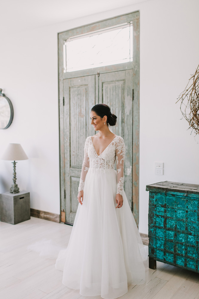 The dress was exactly what I was looking for! When I came into Raffaele Cuica looking for gowns, I knew what I was after, I just wanted to make sure the style actually suited me. The minute I tried the dress on, it felt amazing, and looked even better! But I immediately felt torn because I had my heart set on a dress with long sleeves, and wasn’t sure I’d find a perfect combination of both. Then I found out that Caleche would happily design anything additional for any of their dresses to fit with your vision, and after receiving a sketch back of the design of my dress (in record time), I knew that was it! It was the second dress I’d tried on, and I had no doubt that it was ‘the one.’ My favourite feature was the intricate detail on the bodice and how well it fit me – I was honestly so comfortable all day.