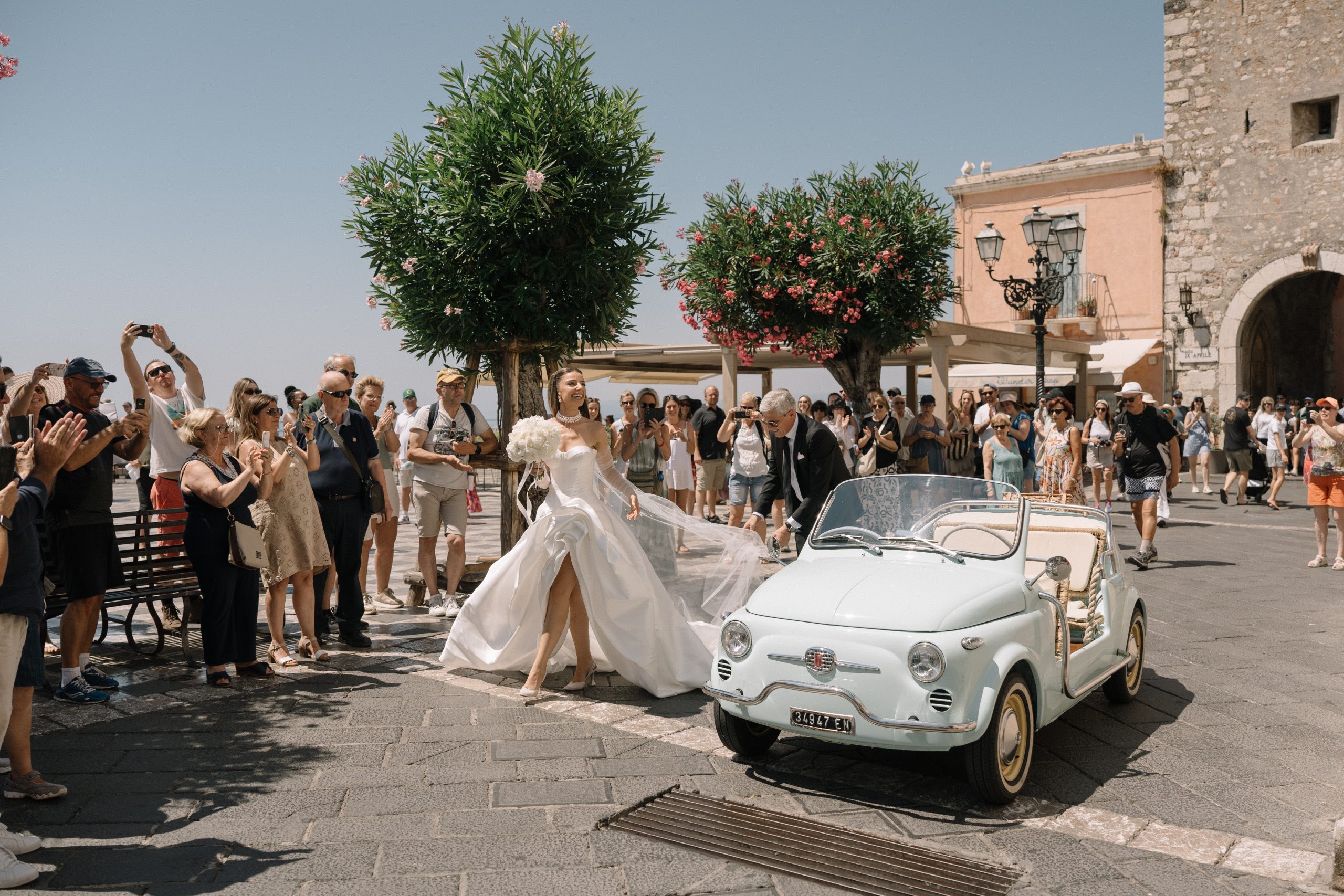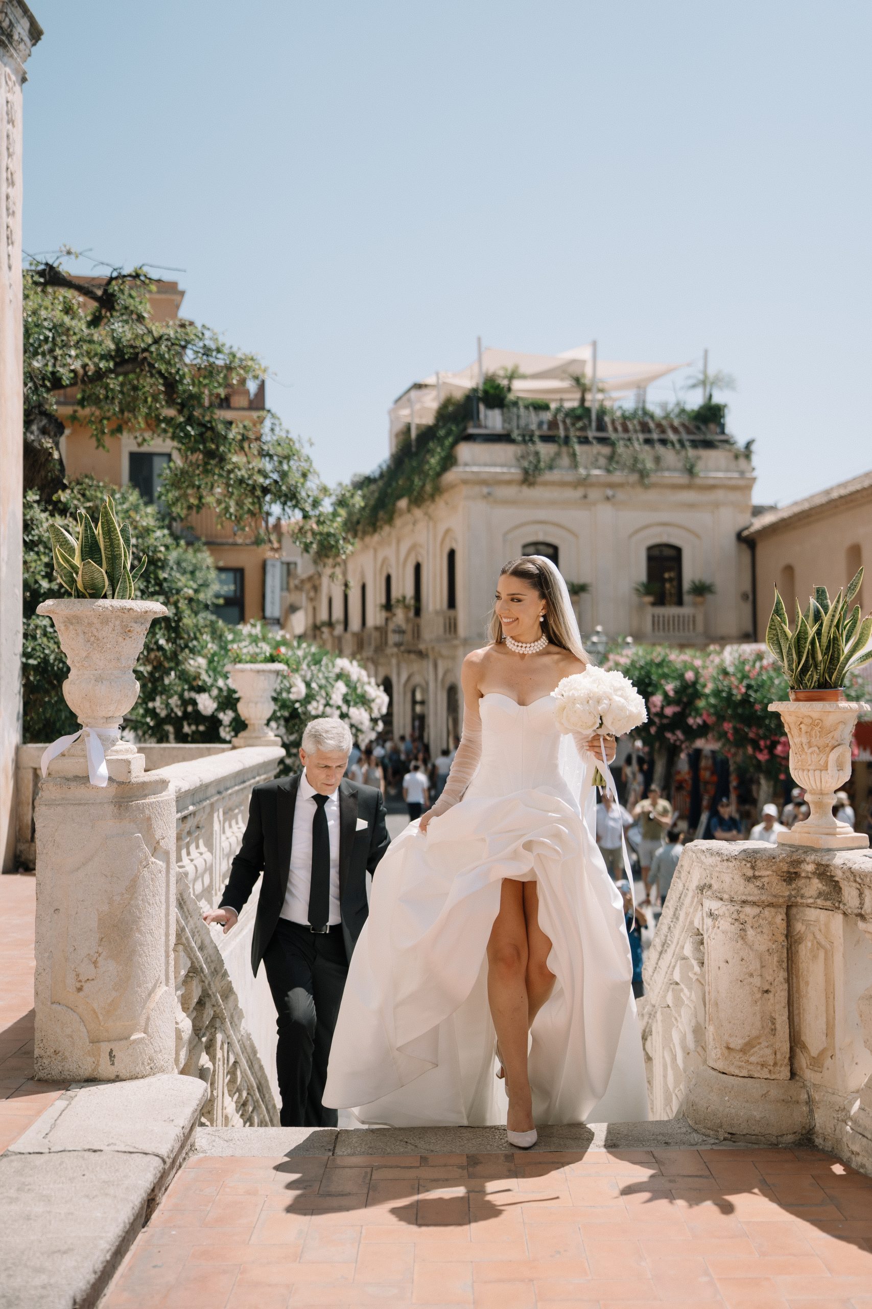 The celebration was styled with delicate artistry, drawing on the rich textures and tones of Europe. Neutral palettes and organic elements allowed the natural beauty of Sicily to shine through, while thoughtful design choices gave the day a timeless, editorial feel. From the gentle glow of the Mediterranean sun to the graceful arrangement of florals, every detail offered a touch of Sicilian wedding inspiration for couples dreaming of a romantic European setting.