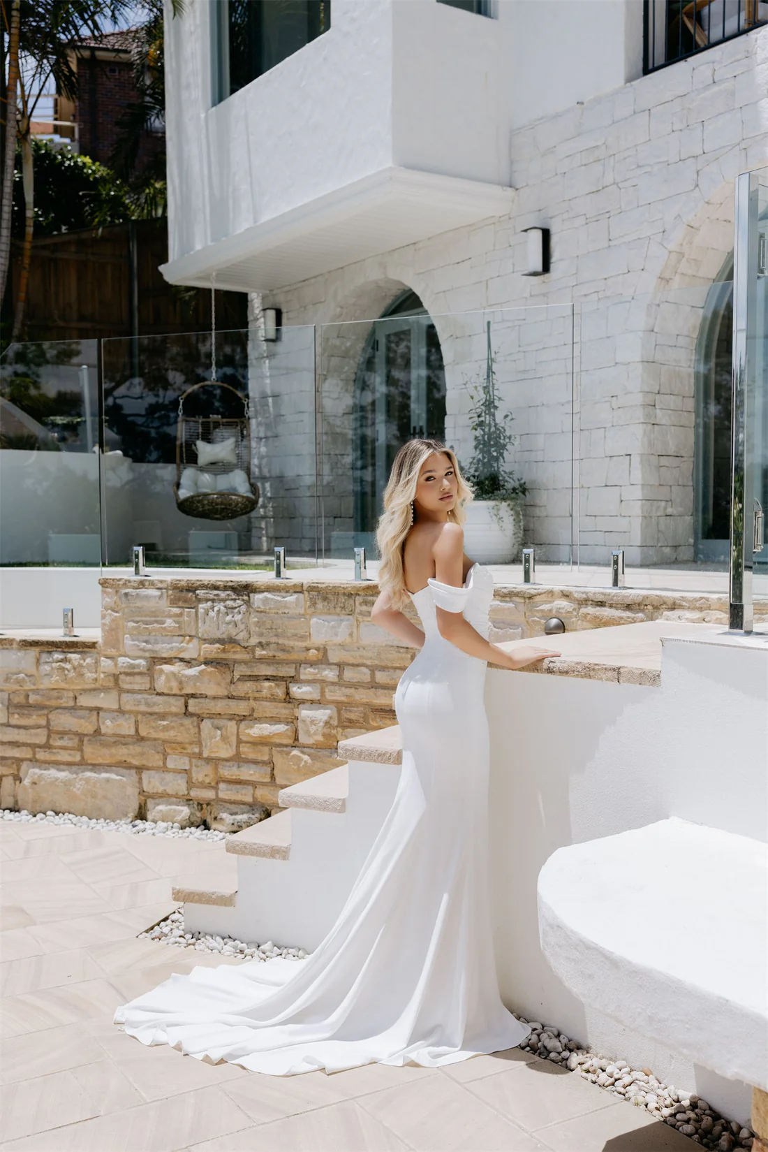 April is an elevated classic with a twist. April features a timeless, elegant silhouette with the added touch of beautiful pearls. This new season creation is a beautifully draped minimal dress with flattering ruching that complements the figure. For added versatility, April comes with detachable draped off-the-shoulder sleeves, allowing you to customise your look for any moment of your special day.