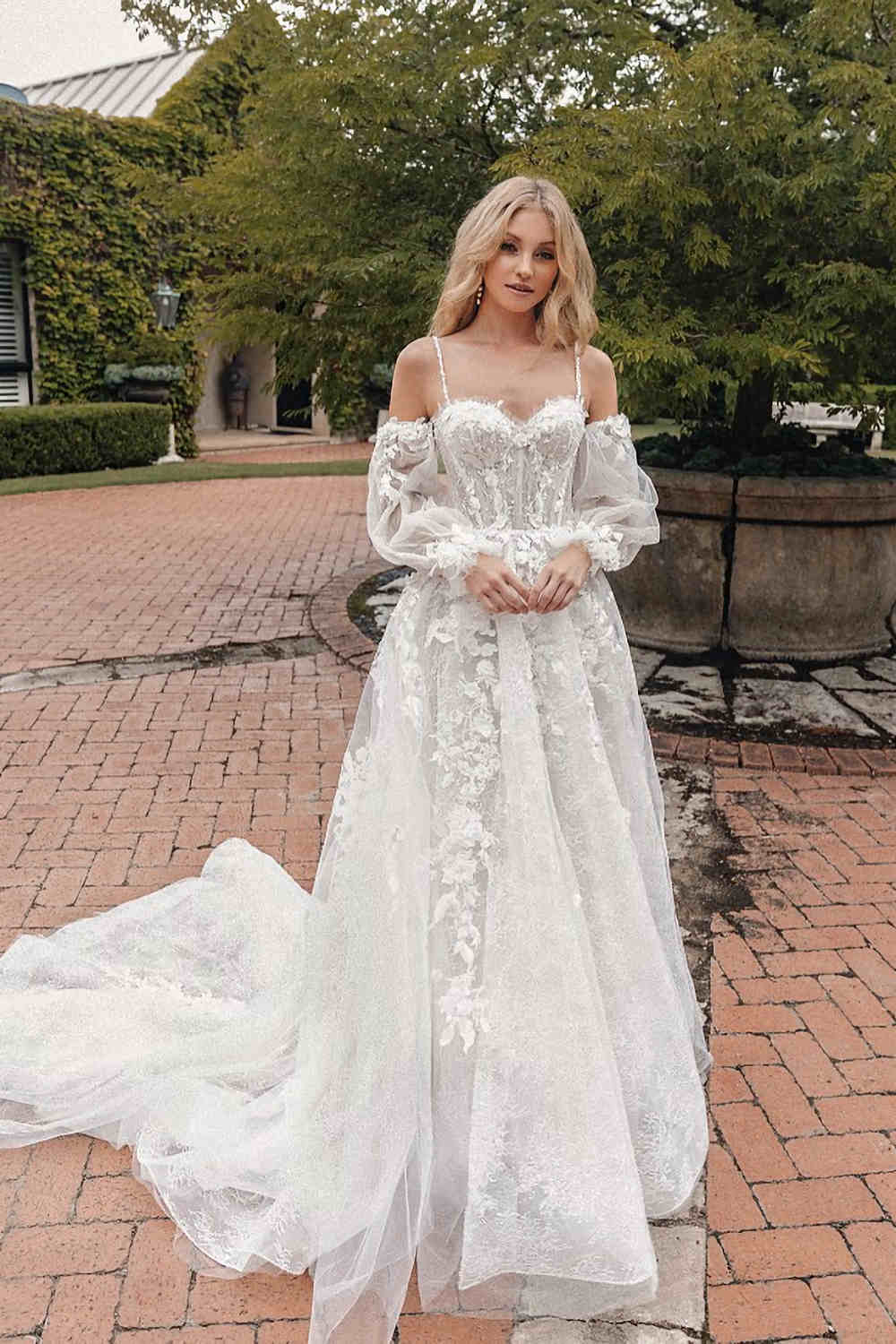 Istanbul Wedding Gown – This romantic sweetheart ballgown features delicately beaded spaghetti straps, stunning floral lace and a gorgeous train.