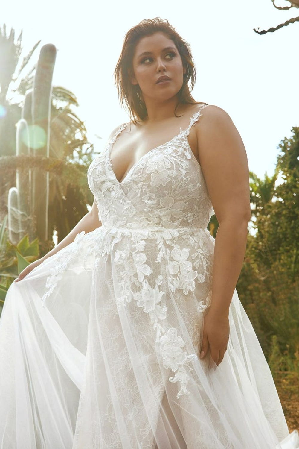 The Katsura Bridal Gown by Pronovias is truly a wonder to behold Soft tulle and Chantilly lace create depth and soft patterns in this ethereal A-line wedding dress. With organic 3D applique placement over the bodice and upper skirt, a fashionable front split, and delicately beaded shoulder straps.Price: Original price was: $3,999.00.$1,999.00Current price is: $1,999.00.
