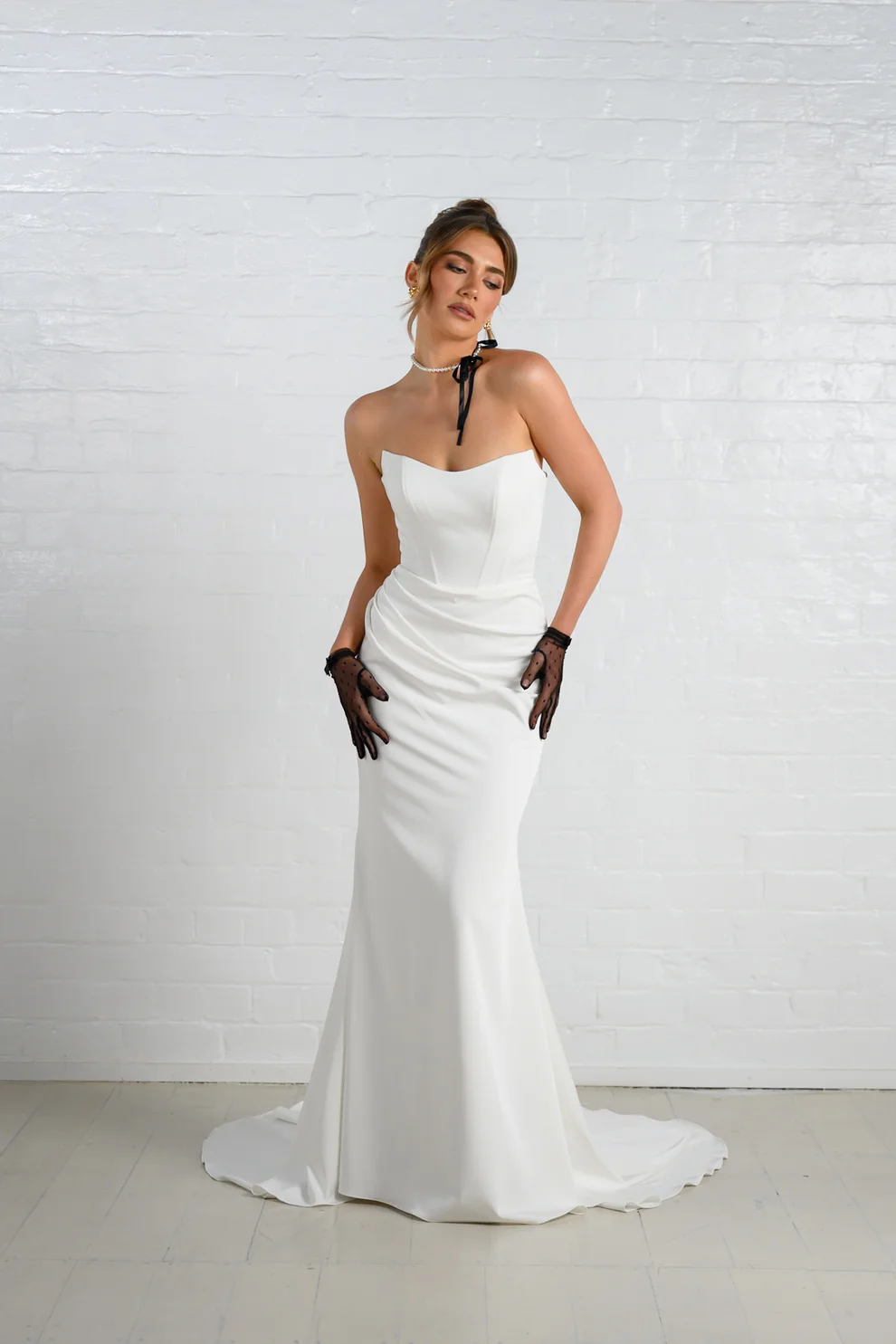 Complete with a pair of gloves, or one of our stunning bows and she is sure to be a stunner on your big day.