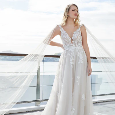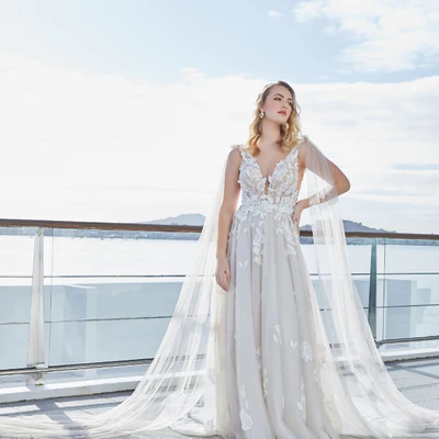 Tui is a wedding dress made for a romantic, dreamer. With layers of soft tulle that move with you and give an effect that you are floating. Featuring a deep plunge and cut out lace on tulle, Tui is a perfect choice for a garden or outdoor setting. Her soft A-line silhouette is flattering and flows seamlessly.