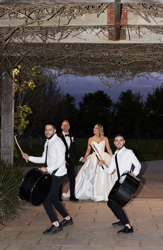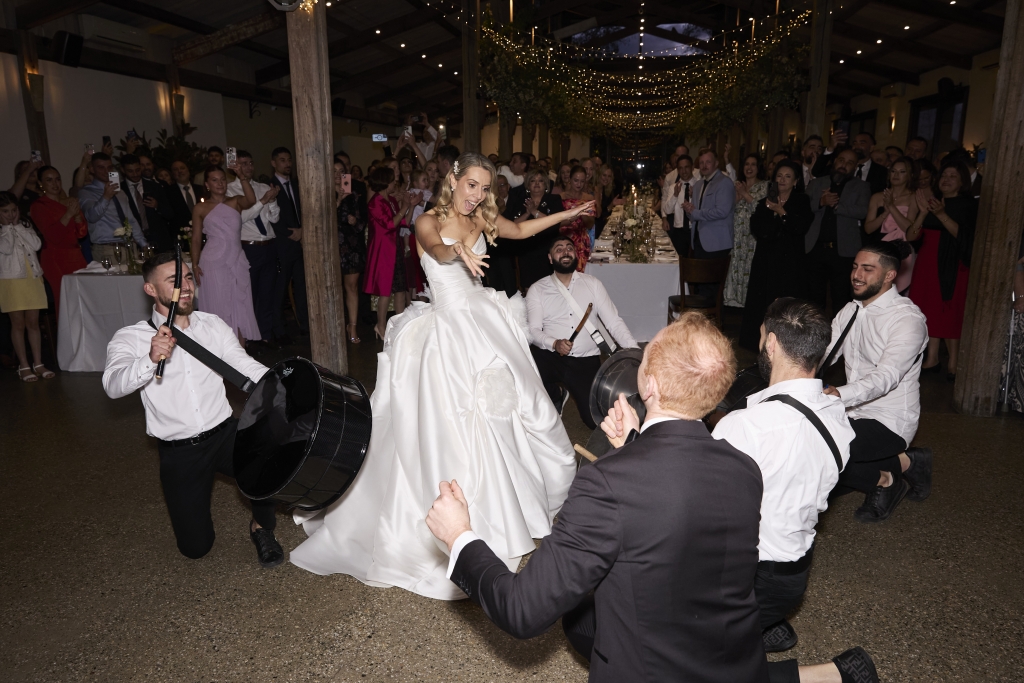 As the sun began to set over the Yarra Valley, the energy of the day gently shifted. What began as a composed and elegant ceremony transitioned into a celebration filled with movement and connection.